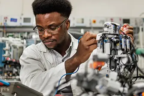 This program emphasizes hands-on experience, the enhancement of critical and creative thinking skills—as careers in engineering technology require the ability to generate innovative solutions to complex problems—and effective written, verbal and visual communication. Coursework builds a foundation in circuit theory and design, digital and analog electronics, as well as computer programming.
