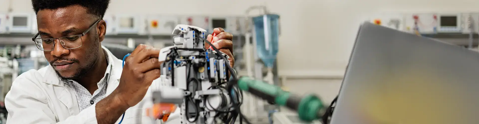 Our online Associate of Science in Electronics and Computer Engineering Technology degree is optimal if you’re looking to obtain knowledge of practical applications and concepts in engineering technology. While many engineering technology programs begin with calculus, this program begins with algebra — an ideal opportunity if you have completed minimal coursework in math, are seeking development of complementary skills, or are interested in interdisciplinary study, which is beneficial if you’d like to pursue a career in fields such as environmental engineering, biomedical engineering, or engineering management.